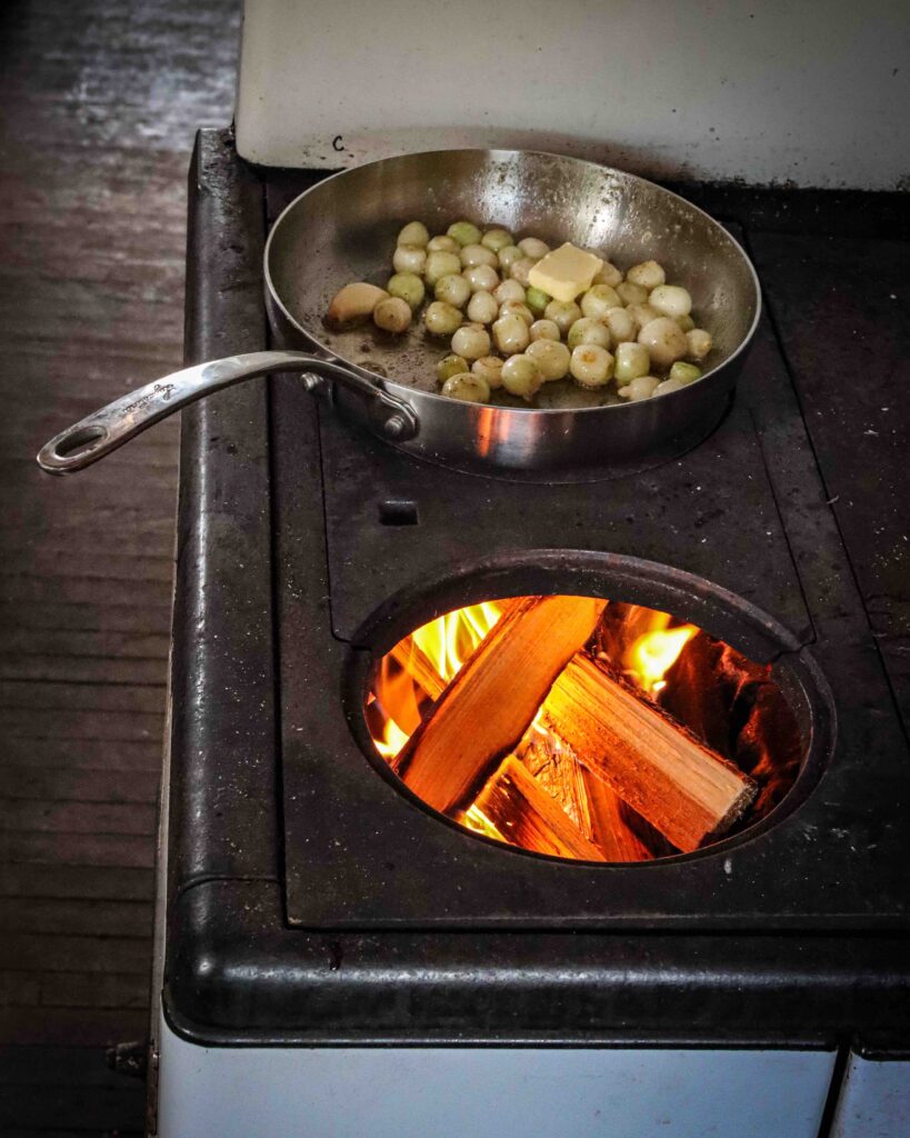 3) Place onions in oven and roast for 15 minutes or until soft and golden, or fry until soft and golden.