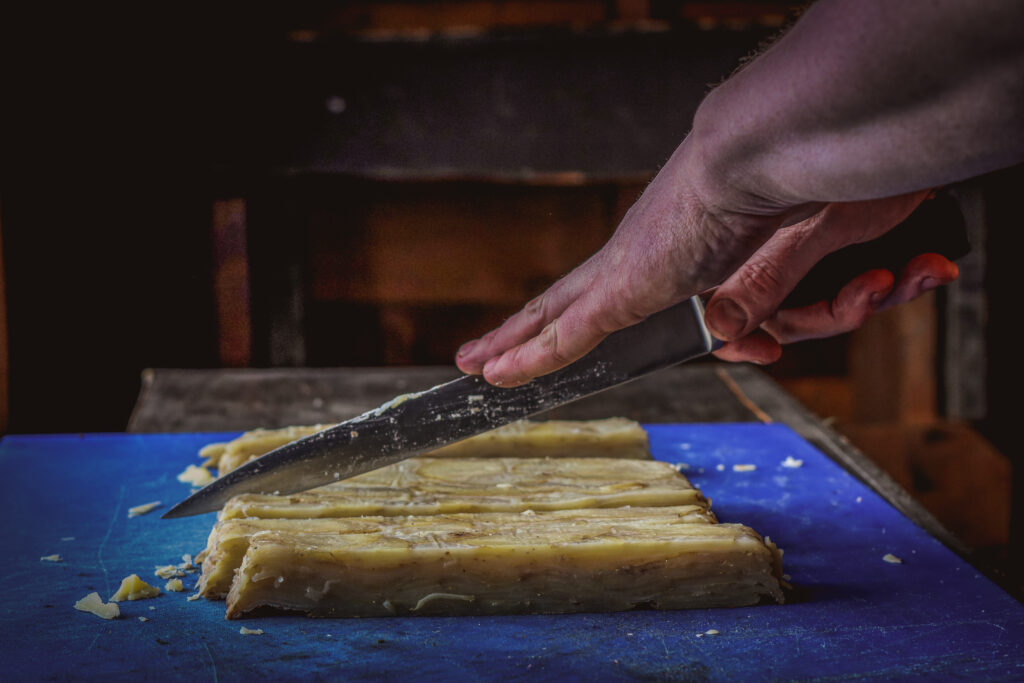 9) The next day, cut the potato side dish into desired portions. For this recipe, we did a two-inch length with a 1-inch width slice of potatoes.