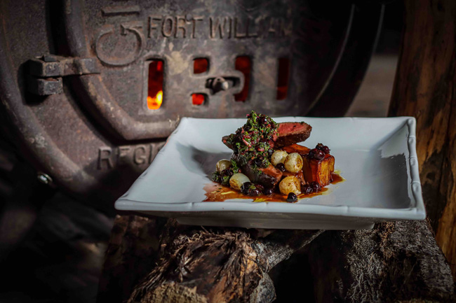 Served with crispy potato pavé, roasted pearl onions, and Saskatoon berry chimichurri – this melt-in-your-mouth dish is hearty and will allow you to savour the hunt, long after the season has ended.
